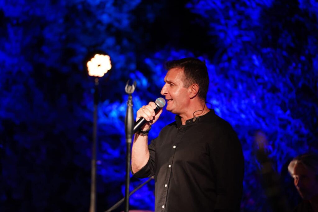 Στην αρχή της εκδήλωσης ο Περιφερειάρχης Κώστας Μουτζούρης ευχαρίστησε τον σπουδαίο συνθέτη για την αποδοχή της πρόσκλησης και τον τέως υπουργό Πρόεδρο της εταιρείας «Αρχιπέλαγος» Νίκο Σηφουνάκη για την συνεισφορά του στη διοργάνωση της εκδήλωσης.