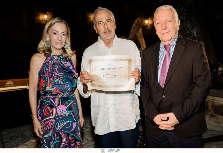 Σε κλίμα συγκίνησης, ακολούθησε η βράβευση του Νίκου Βαφειά από τον Περιφερειάρχη Κωνσταντίνο Μουτζούρη με επίδοση τιμητικού επαίνου.