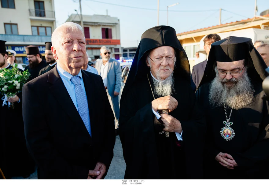 Τον Οικουμενικό Πατριάρχη συνόδευσαν οι Σεβασμιότατοι Μητροπολίτες Χίου Ψαρών και Οινουσσών κ.κ. Μάρκος , Αιτωλίας και Ακαρνανίας κ.κ. Δαμασκηνός εκπρόσωπος της Αρχιεπισκοπής, Σμύρνης κ.κ. Βαρθολομαίος και Μεξικού κ.κ. Ιάκωβος.