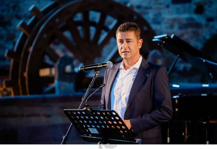 Ο Περιφερειάρχης Βορείου Αιγαίου Κωνσταντίνος Μουτζούρης καλωσόρισε τους παρευρισκόμενους ενώ χαιρετισμό απεύθυνε o Σεβασμιότατος Μητροπολίτης Χίου κ.κ. Μάρκος, η Υφυπουργός Σοφία Βούλτεψη, ο Πρέσβης της Αγγλίας Matthew Lodge, ο Βουλευτής Χίου Νότης Μηταράκης, και ο Πρόεδρος της Ακαδημίας Αθηνών Σταμάτης Κριμιζής.
