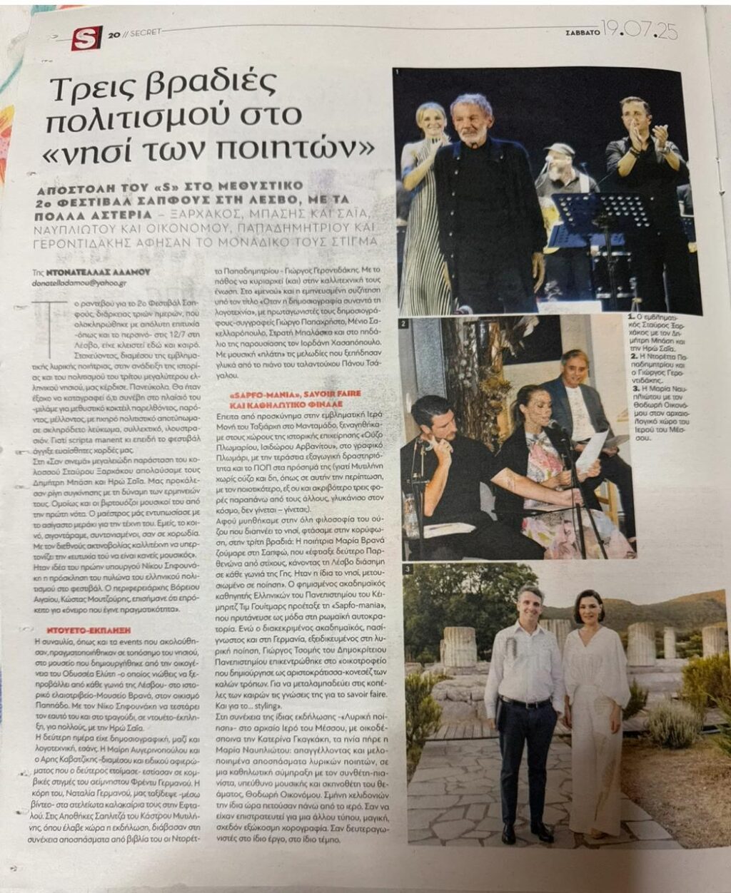 • 2025 – SAPPHO LESVOS FESTIVAL ΔΗΜΟΣΙΕΥΣΕΙΣ