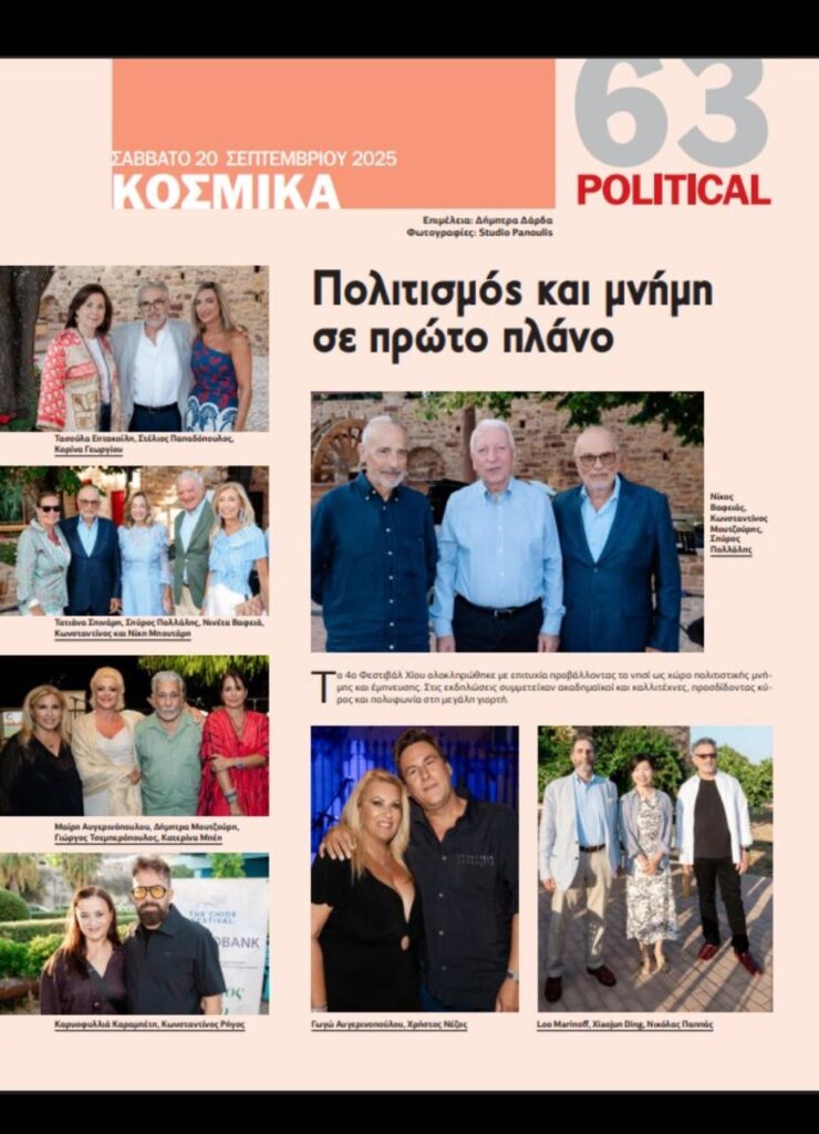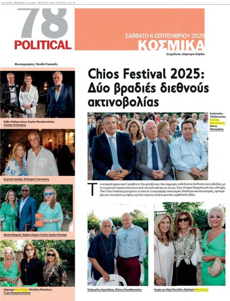 COSMOPOLITI.COM: Φεστιβάλ Χίου 2025: Βραδιές με προσωπικότητες διεθνούς κύρους
