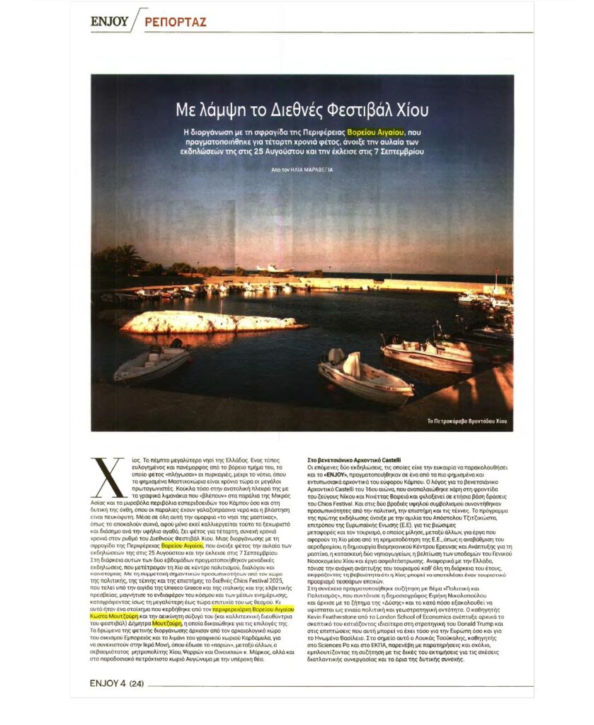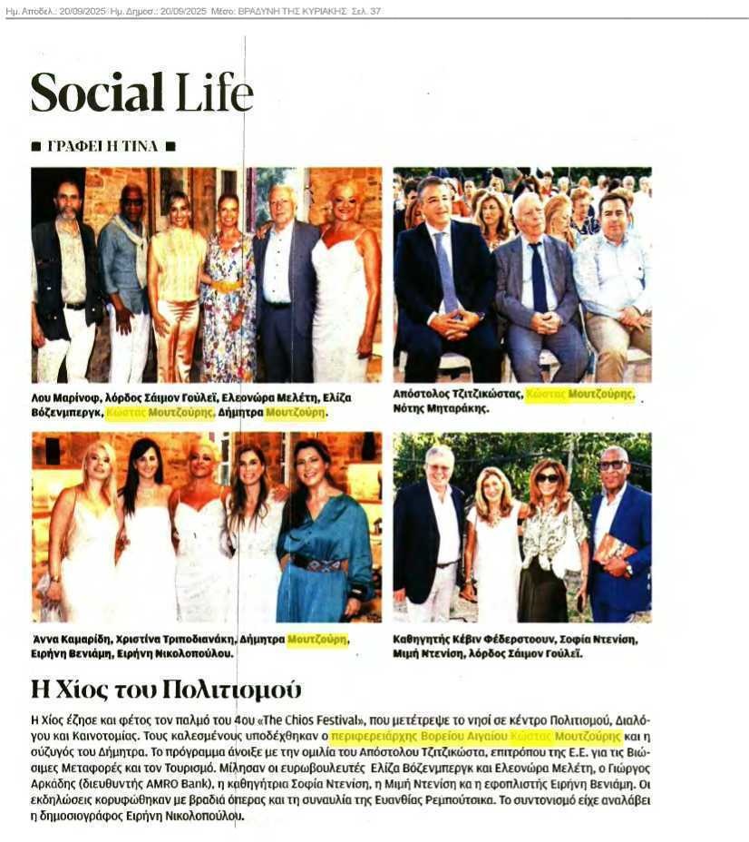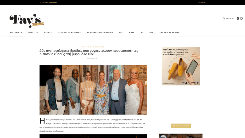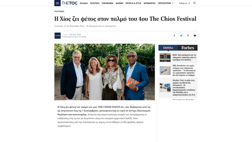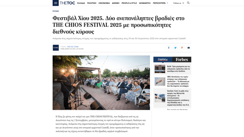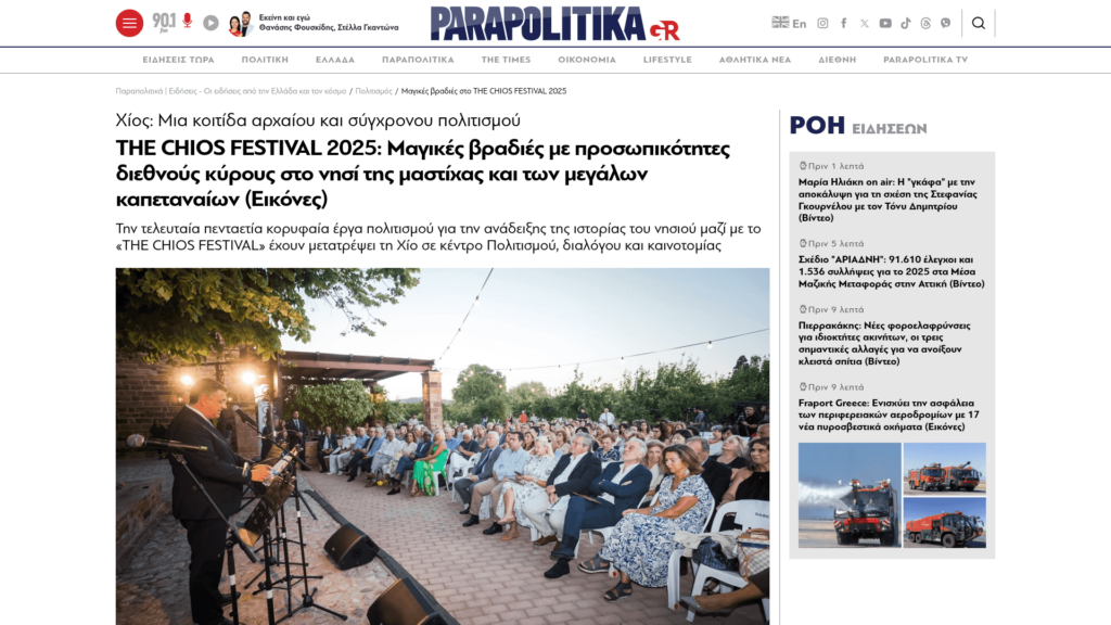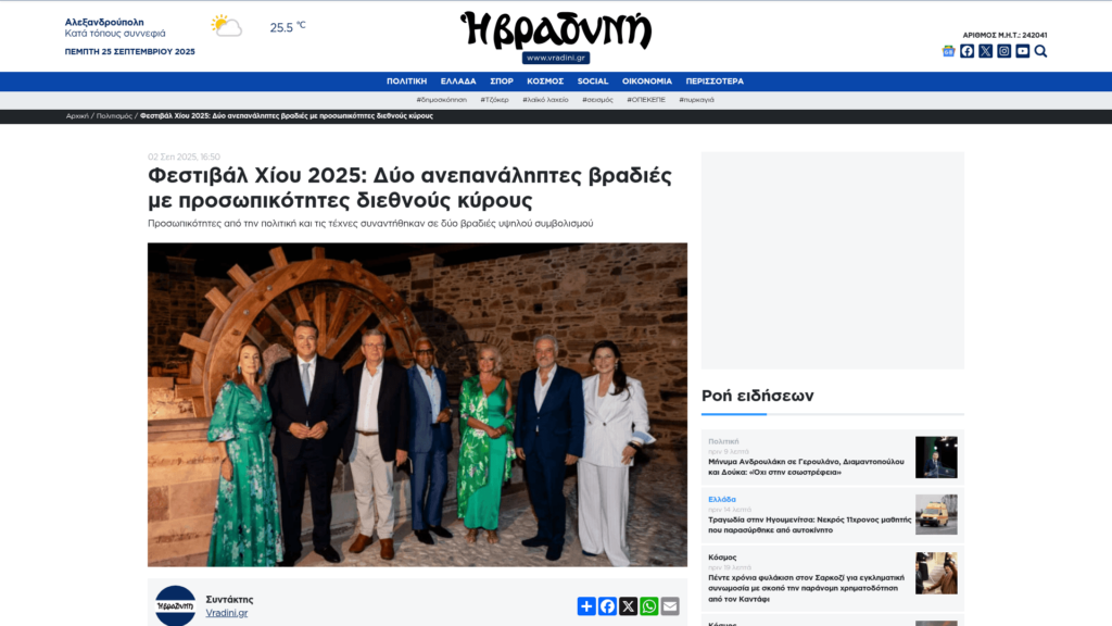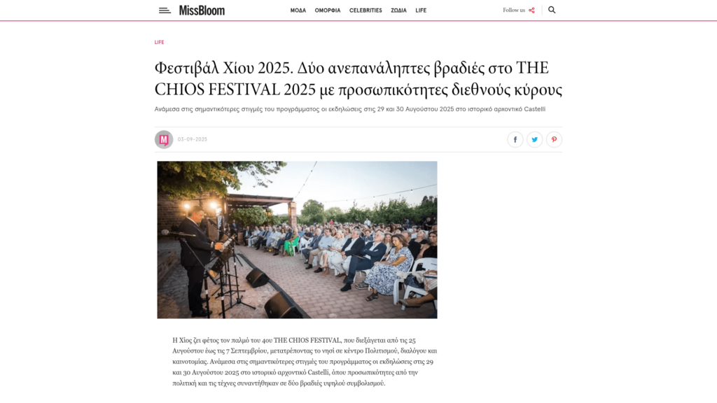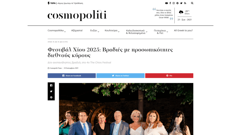 COSMOPOLITI.COM: Φεστιβάλ Χίου 2025: Βραδιές με προσωπικότητες διεθνούς κύρους