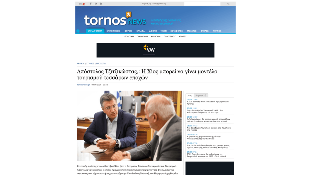TORNOSNEWS.GR: Η Χίος μπορεί να γίνει μοντέλο τουρισμού τεσσάρων εποχών