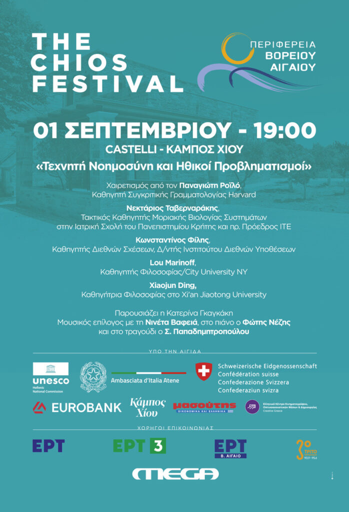 Την 1η Σεπτεμβρίου 2025, η συζήτηση για την τεχνητή νοημοσύνη και τις ηθικές προεκτάσεις της θα φέρει στο ιστορικό Castelli τον Παναγιώτη Ροϊλό, καθηγητή Συγκριτικής Γραμματολογίας του Harvard και πρόεδρο του Ευρωπαϊκού Πολιτιστικού Κέντρου Δελφών, ο οποίος θα απευθύνει χαιρετισμό, τον Νεκτάριο Ταβερναράκη, τακτικό καθηγητή Μοριακής Βιολογίας Συστημάτων στην Ιατρική Σχολή του Πανεπιστημίου Κρήτης και πρ. πρόεδρο ΙΤΕ, τον Κωνσταντίνο Φίλη, καθηγητή Διεθνών Σχέσεων, διευθυντή Ινστιτούτου Διεθνών Υποθέσεων, τον Lou Marinoff, καθηγητή φιλοσοφίας, City University NY και την Xiaojun Ding, καθηγήτρια Φιλοσοφίας, Xi’an Jiaotong University, με την Κατερίνα Γκαγκάκη να συντονίζει έναν διάλογο που θα ολοκληρωθεί με μουσικό πρόγραμμα από τη Νινέτα Βαφειά, τον Φώτη Νέζη και τη Σοφία Παπαδημητροπούλου.